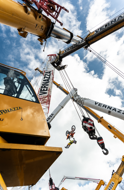 Da una parte Vernazza Autogru, realtà storica del sollevamento e dei trasporti eccezionali che da ottant’anni opera con mezzi imponenti e interventi che richiedono precisione assoluta. Dall’altra Vanni Oddera, che nelle sue evoluzioni ricerca la stessa perfezione: controllo, equilibrio e fiducia totale nei propri mezzi.